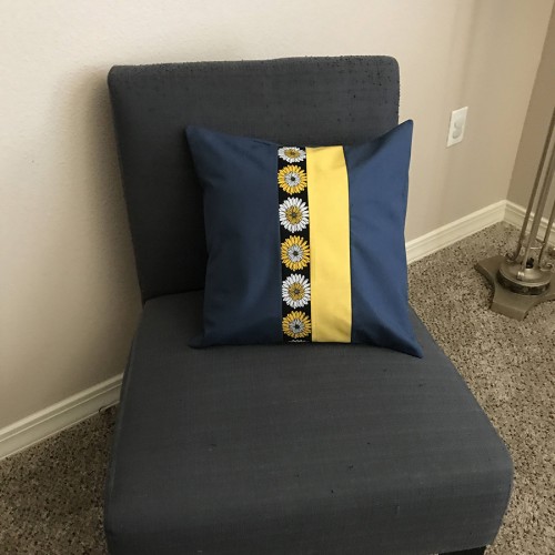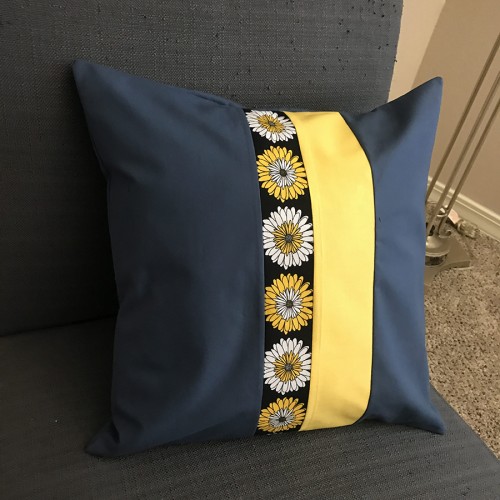 Throw Pillow Cover Metallic Blue, Yellow, Flowers
