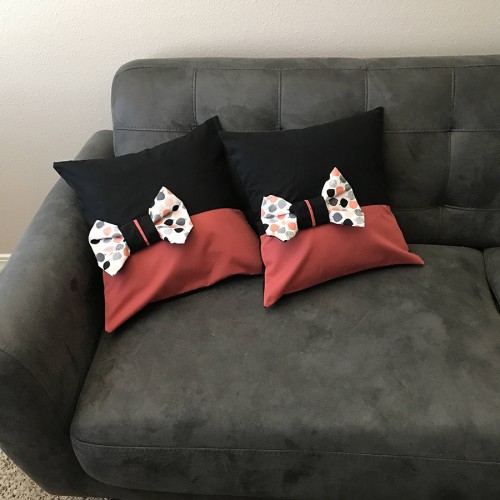 - Pair of Throw Pillow Cover Black and Divine Red-Bow