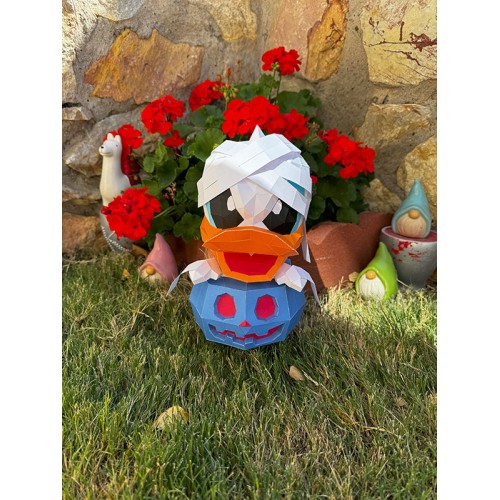 Add a spooky yet adorable touch to your Halloween décor with this handmade papercraft featuring a ‘Donald Mommy’ nestled inside a festive pumpkin!
